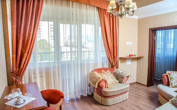 Гости могут посетить ресторан отеля, в котором подают блюда русской и кавказской кухни. Прогулка до различных магазинов, кафе и ресторанов занимает 5 минут.