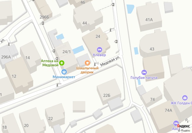 Отель располагается в Адлерском районе города Сочи, ул.Медовая д.24. на побережье Черного моря. В здании гостевого дома находится продовольственный магазин и аптека, а на территории функционирует кафе-столовая, сауна (Русская баня и Хамам) и подогреваемый в межсезонье бассейн (есть период закрытия бассейна ) . В пешей доступности находится городской пляж (10-15 минут),Адлерский океанариум, дельфинарий и еще много других развлечений. Отель предлагает своим гостям номера разного типа. Уютные и светлые номера оборудованы всем необходимым для комфортного проживания. В каждом номере установлена эргономичная мебель, удобные кровати, сплит-система, телевизор, холодильник, интернет (Wi-Fi), горячая вода, санузел, душ. Если у Вас возникнет желание провести время на свежем воздухе, Вы можете выйти во внутренний дворик Отеля и расслабиться у бассейна, вокруг которого установлены шезлонги. Попариться в баньке и в хамаме. Летом здесь можно освежиться в прохладной воде, а, например, на новогодние каникулы или майские праздники, когда в море вода недостаточно теплая, Вы можете поплавать в подогреваемом бассейне. В зимнее время Отель продолжает принимать туристов. Недорогие, но при этом комфортные номера пользуются спросом у любителей активного отдыха, ведь всего в часе езды находится горнолыжный курорт «Красная поляна». На территории Отеля работает кафе-столовая, где можно заказать вкусные домашние блюда по доступным ценам. По вечерам работает мангал-зона, можно попробовать настоящий ароматный кавказский шашлык из нежнейшего мяса, промаринованного по старинному семейному рецепту. При необходимости за дополнительную плату Отель организовывает трансфер от ж/д вокзала г.Адлер и Аэропорта и экскурсии по Большому Сочи, Абхазии и Красной поляне, в том ,числе джиппинг по горам.