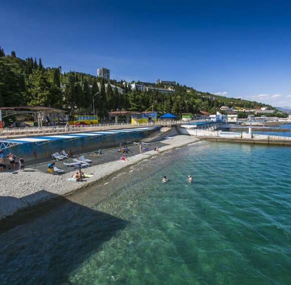 Собственный мелкогалечный пляж в 200 метрах от корпуса, оборудованный всем необходимым.