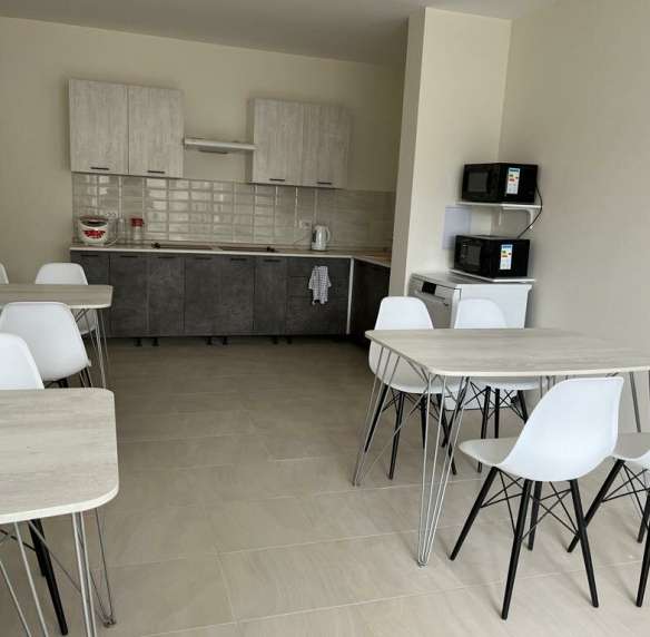 На кухне имеется всё необходимое для приготовления пищи: полный набор посуды, микроволновая печь, электроплита, кофеварка, мультиварка и посудомоечная машина. Для отдыха на солнце предусмотрена терраса. Также есть возможность припарковать автомобиль. Проживание с домашними животными допускается, но за дополнительную плату. Рядом с гостевым домом находятся магазины и кафе.