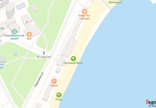 Пляж «Ласковый берег» расположен в центре поселка. Сюда приходят туристы со всех уголков курорта, так как это практически единственный благоустроенный пляж с развитой инфраструктурой и большим количеством развлечений для отдыхающих. Вход на территорию бесплатный.
