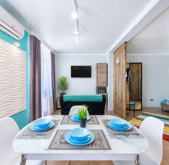 Шикарная квартира с видом на море, с новой мебелью и новым ремонтом. Для вашего удобства есть все необходимое для комфортного проживания, есть балкон. Кухня оборудована всей необходимой посудой, столовые приборы, СВЧ, холодильник, чайник, электроплита, стиральная машина, фен, утюг, гладильная доска, сушилка для белья, телевизоры Smаrt ТV, высокоскоростной Wi-Fi, постельное белье, полотенца.
