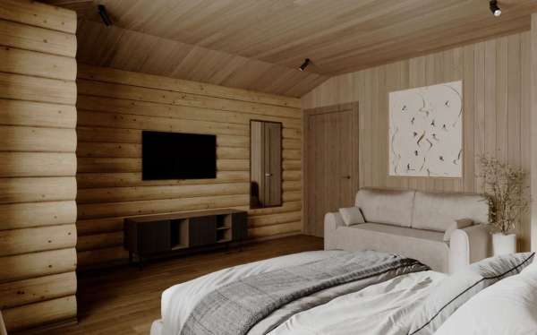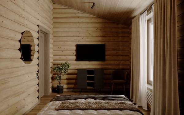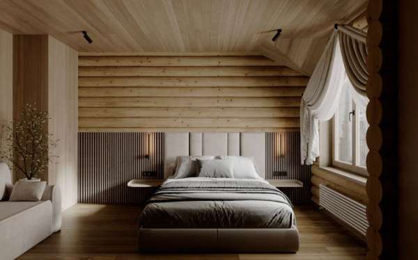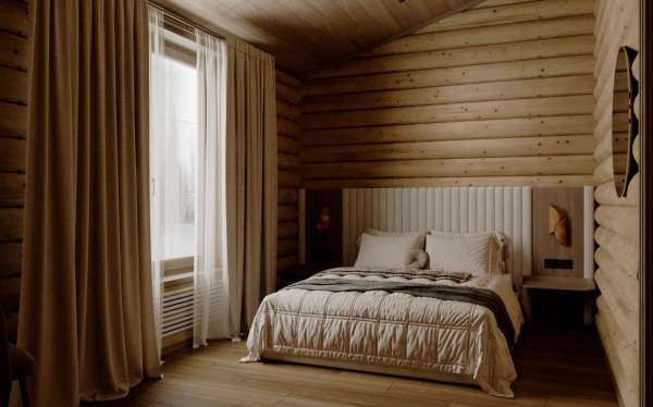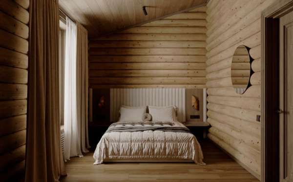 Каждая мелочь — от расположения розетки до текстиля и запаха дерева — продумана с любовью.