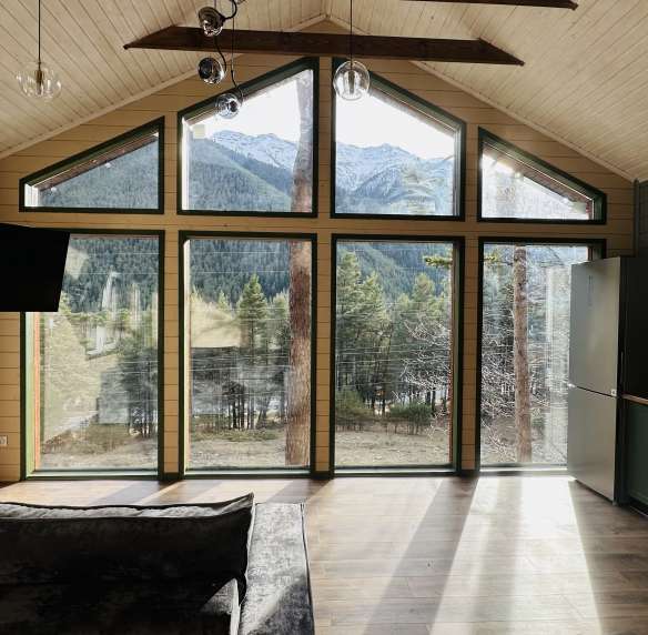 На втором этаже: ещё две спальни, гостиная с потрясающим видом на горы, санузел и открытый балкон с видом на лес — идеальное место для утреннего кофе.