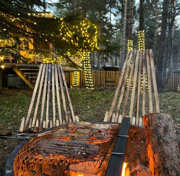 Большой участок с хвайными деревьями, зонами отдыха и барбекю. Уютный домик со всем необходимым для комфортного проживания, большая терраса для вечерних посиделок.