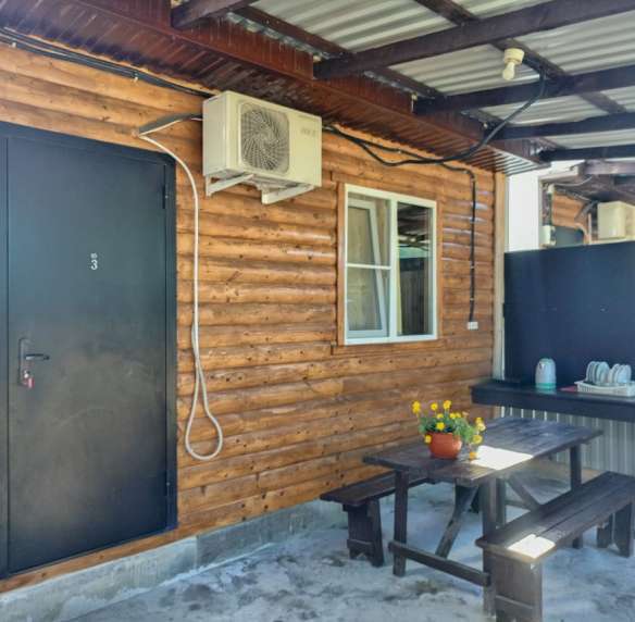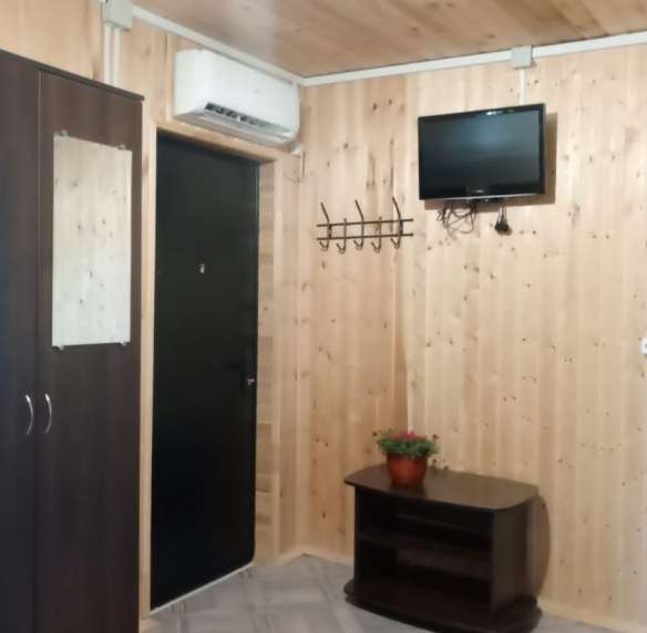 У каждого домика свой огороженный дворик с навесом. В домиках санузел, душевая, холодильник, сплит система, телевизор. На территории имеется мангал. Бесплатная парковка, имеется столовая и шашлычный дворик с 10% скидкой нашим гостям, плюс трёхразовое питание под заказ. В радиусе 100 метров находятся продуктовые и овощные магазины и также торговые палатки, столовые и кафе. Имеется детская площадка и бассейн 5×3м. Трансфер по цене расхода бензина. У нас всё почестному, гостеприимство на высшем уровне!
