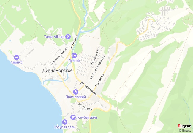 До моря 5−7 минут ходьбы. Рядом столовая (кафе «Курортное»), магазины, аптека, кинотеатр, рынок, банкоматы.