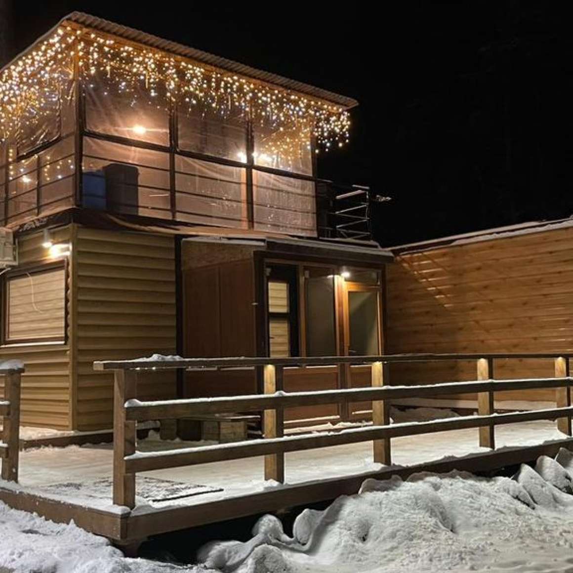 В доме все есть. Впятером может показаться тесновато, но нам было нормально. Трасса на втором этаже - прекрасное решение, чтобы посидеть вечером или во время дождя.