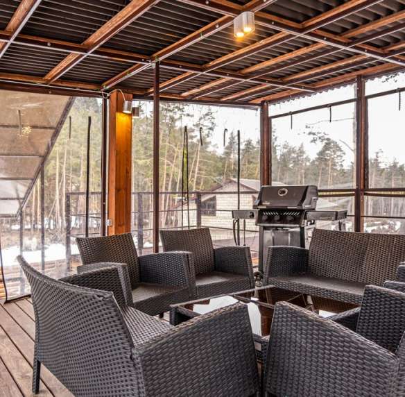 Крытая веранда с барбекю.
