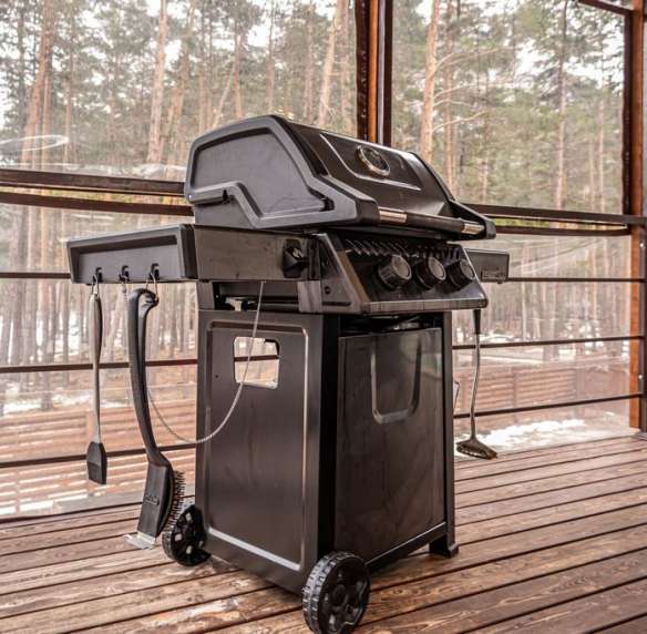 Газовый гриль на крытой веранде.