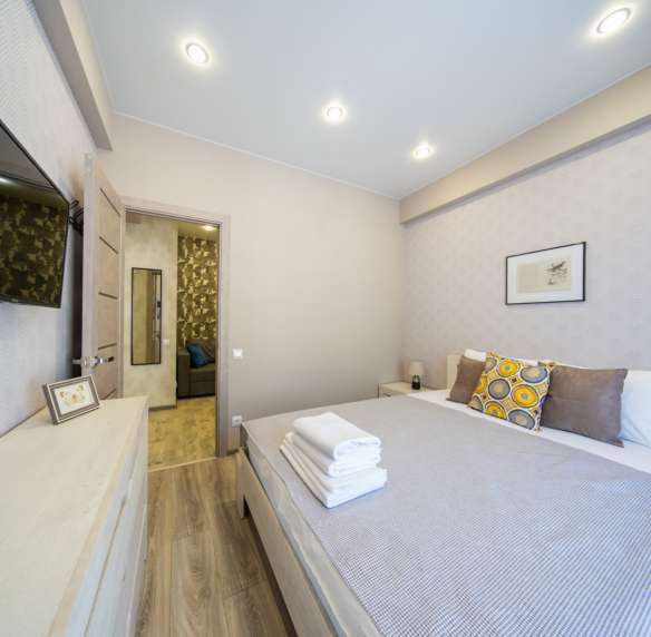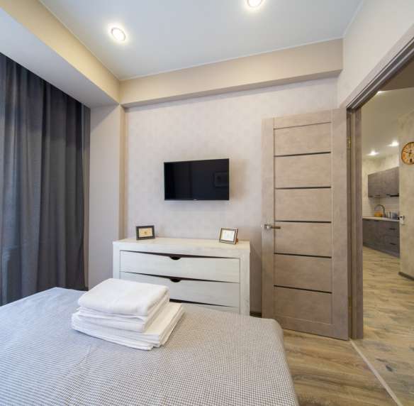 Есть всё для комфортного проживания: современное кухонное оборудование, набор посуды и столовых приборов, качественная сантехника. Уборка перед Вашим заселением, постельное белье и полотенца уже включены в стоимость проживания. Рядом с домом расположена парковка.