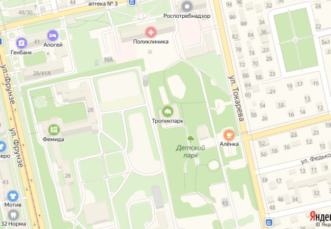 Добраться до парка можно на машине по улице Токарева. Ближайшая остановка общественного транспорта – «Аттракционы».