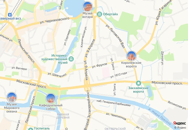 Квартира расположена в тихом зелёном районе Калининграда, на улице Фрунзе.