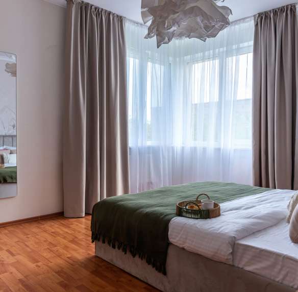 Апартаменты «Флора» от origami-apart расположены на тихой улице Серпуховской — в одном из спокойных и уютных районов Калининграда. Это место, где вас окружает тишина, неспешный ритм жизни и комфорт городской среды — идеальный выбор для отдыха и перезагрузки.
