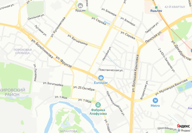 Апартаменты расположены недалеко от центра города, в районе с развитой инфраструктурой — рядом есть магазины и кафе. С балкона открывается живописный вид на город. В шаговой доступности находятся аквапарк, парки и музеи. На улице Баумана можно посетить различные рестораны, бары и магазины. Набережная озера Кабан и Кремлёвская набережная — это популярные места для прогулок, где есть кафе и аттракционы. Любителей культурного досуга может заинтересовать Алафузов лофт, предлагающий арт-пространство для творчества.