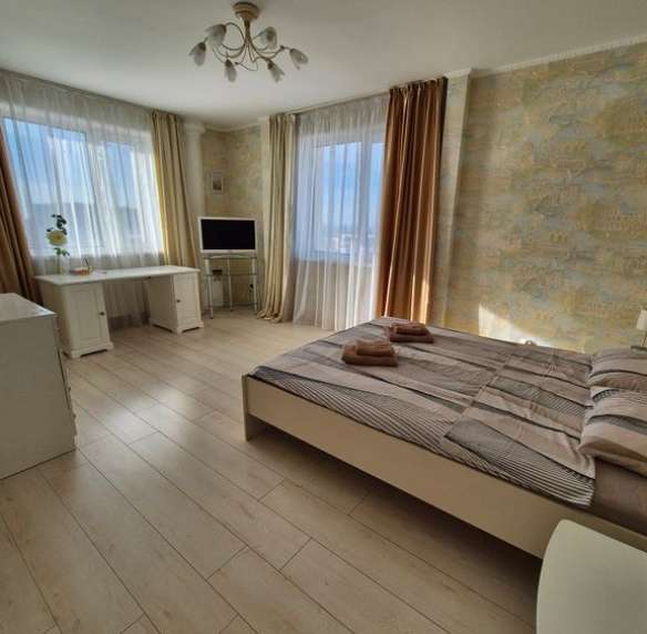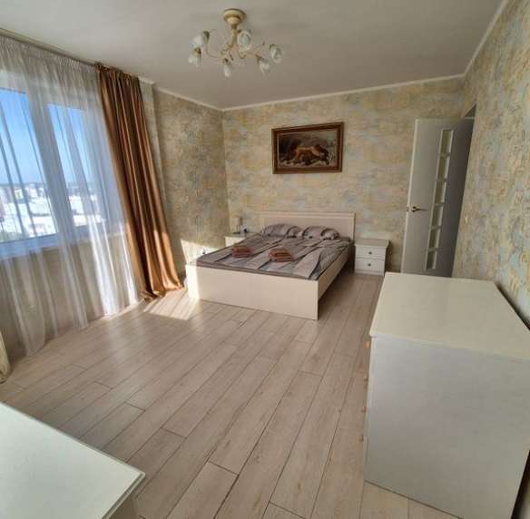 Светлая, уютная семейная квартира с видом на город и удобным бесконтактным заселением в комфортном районе рядом с крупным торговым центром «Мега» и отличной транспортной доступностью, с ближайших остановок можно добраться в любую точку города.