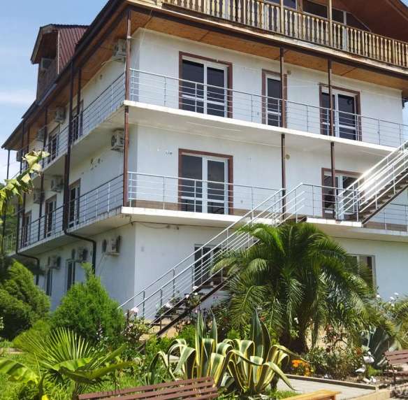Здание дома 3 -этажное с открытым балконом на каждом этаже, крыша обустроена под номера с выходом на массандру.