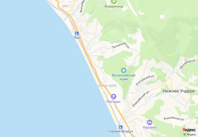 Дом расположен в 7−10 минутах от черноморского пляжа. В пешей доступности: магазины, столовые, Византийский храм, кафе, караоке и санаторий «Магадан» (бассейн, шведский стол, оздоровительные процедуры, джакузи — за отдельную плату). Аквапарк «АкваЛоо» и дельфинарий — находится в 5 минутах на автобусе (либо в 20 минутах ходьбы). Экскурсии: 33 водопада, джиппинг, дегустация сыра, вина и т. д. (за отдельную плату).