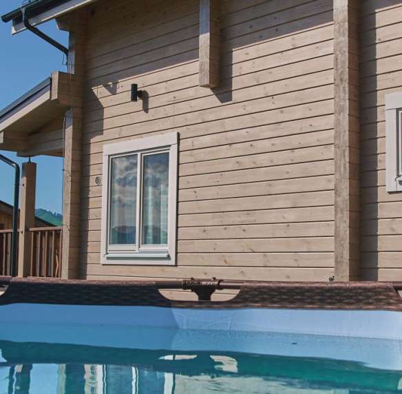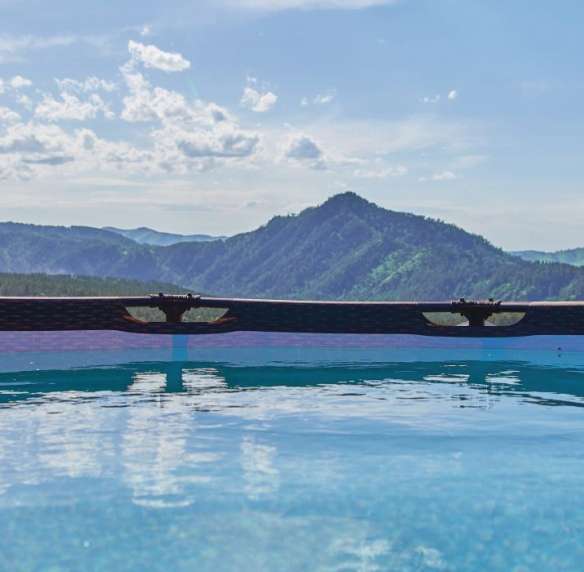На территории каркасный бассейн с шикарным видом на горы