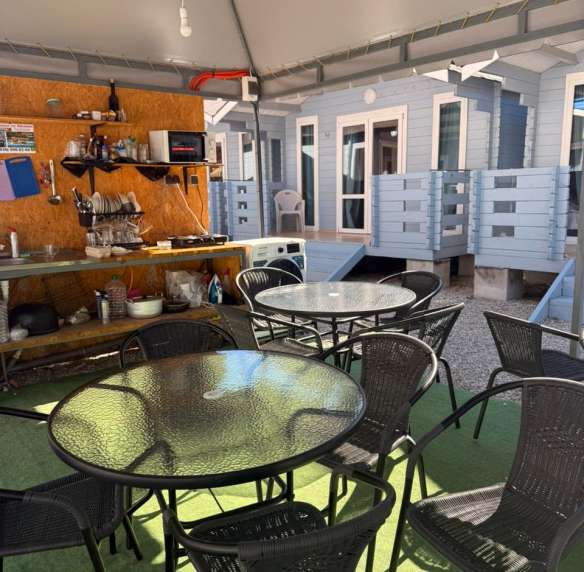 В каждом домике есть фен, чайник. Домики оснащены кабельным телевидением, WI-FI, также имеется кондиционер и ванная комната, где для Вас подготовлены мыльные наборы. На территории мини отеля есть общая кухня-веранда, полностью оборудованная для самостоятельного приготовления пищи, гладильная доска, утюг, стиральная машинка, зона барбекю.