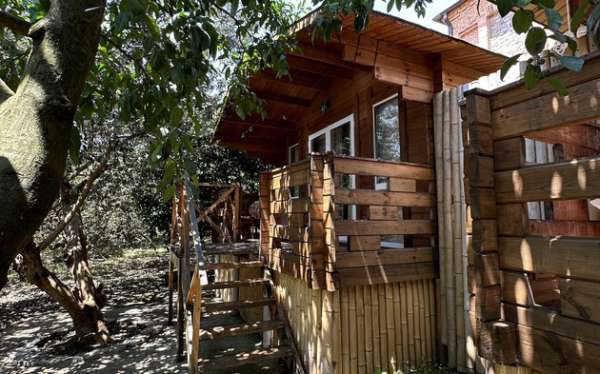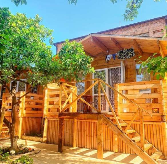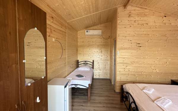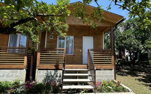 Новые деревянные домики в саду — 250 метров до пляжа, каменный и 2-комнатный деревянный домик — 300 метров до пляжа