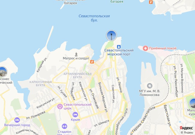 В шаговой доступности главная площадь города - площадь Нахимова, Графская пристань и Приморский бульвар, Артиллерийская бухта. Памятник затопленным кораблям. Улица Большая Морская — одна из центральных улиц Севастополя, часть Центрального городского кольца, в мае 2020 года завершена ее реконструкция. Фонтан сухой на площади Ушакова. Пляж Хрустальный. Дельфинарий, аквариум, детский парк. Скейт - вело парк. Центральный рынок, аптека, магазины, банки, развлекательные заведения. Рядом ресторан быстрого питания О'Кеy очень вкусно можно поесть. Пирожковая, ресторан украинской кухни Львивска кава, Борщок. Кафе мяса Кочерга. Пиццерия. В доме имеются кондитерская, продуктовый магазин, аптека, кафе.