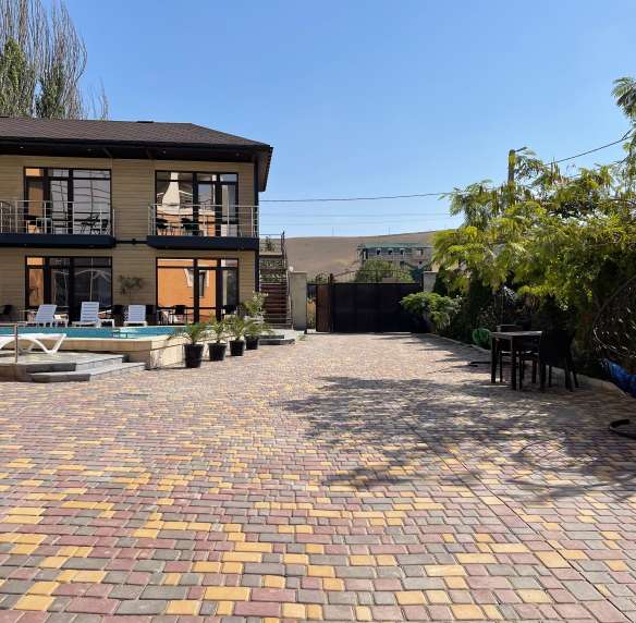 Территория гостевого дома оформлена цветами т пальмами, что позволит почувствовать атмосферу Черноморья и домашнего уюта. В гостевом доме имеется хорошо оборудованная кухня для самостоятельного приготовления пищи , мангальная зона , двор . беседки, шезлонги , столы стулья. Батут , детская горка.