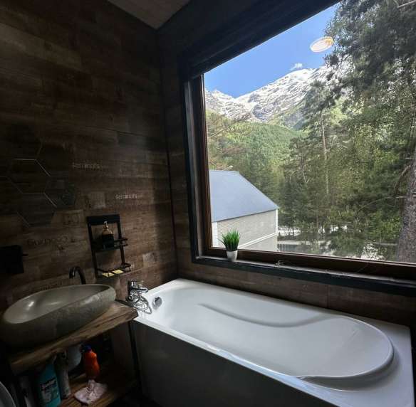 потому что это отличное соотношение доступности и качества! Идеальное месторасположение, в шаговой доступности (5-10 минут ходьбы) поляна Чегет со всей своей прекрасной инфраструктурой. Кроме этого поблизости кафе, столовая, конные прогулки, парк Альпак, банные комплексы, рыбалка, прокат лыжной экипировки и всего необходимого для активного отдыха. В непосредственной близости протекает река, прекрасный сон и вид обеспечены. Вокруг хвойный лес. Рядом проходит экотропа для любителей хакинга (пеших прогулок). На нашей территории имеется всё необходимое для отличного отдыха: мангальная зона, качели, беседки, гамак и т. д. Также бесплатная автомобильная парковка для гостей.